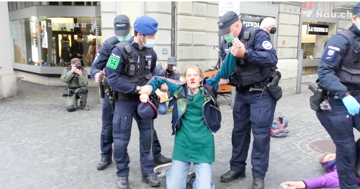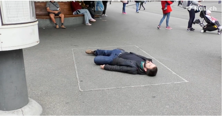 Ce gars a gagné la rébellion. Il a fait un die-in seul à la Paradeplatz, et selon nos informations, a rapidement été enlevé par la police qui .